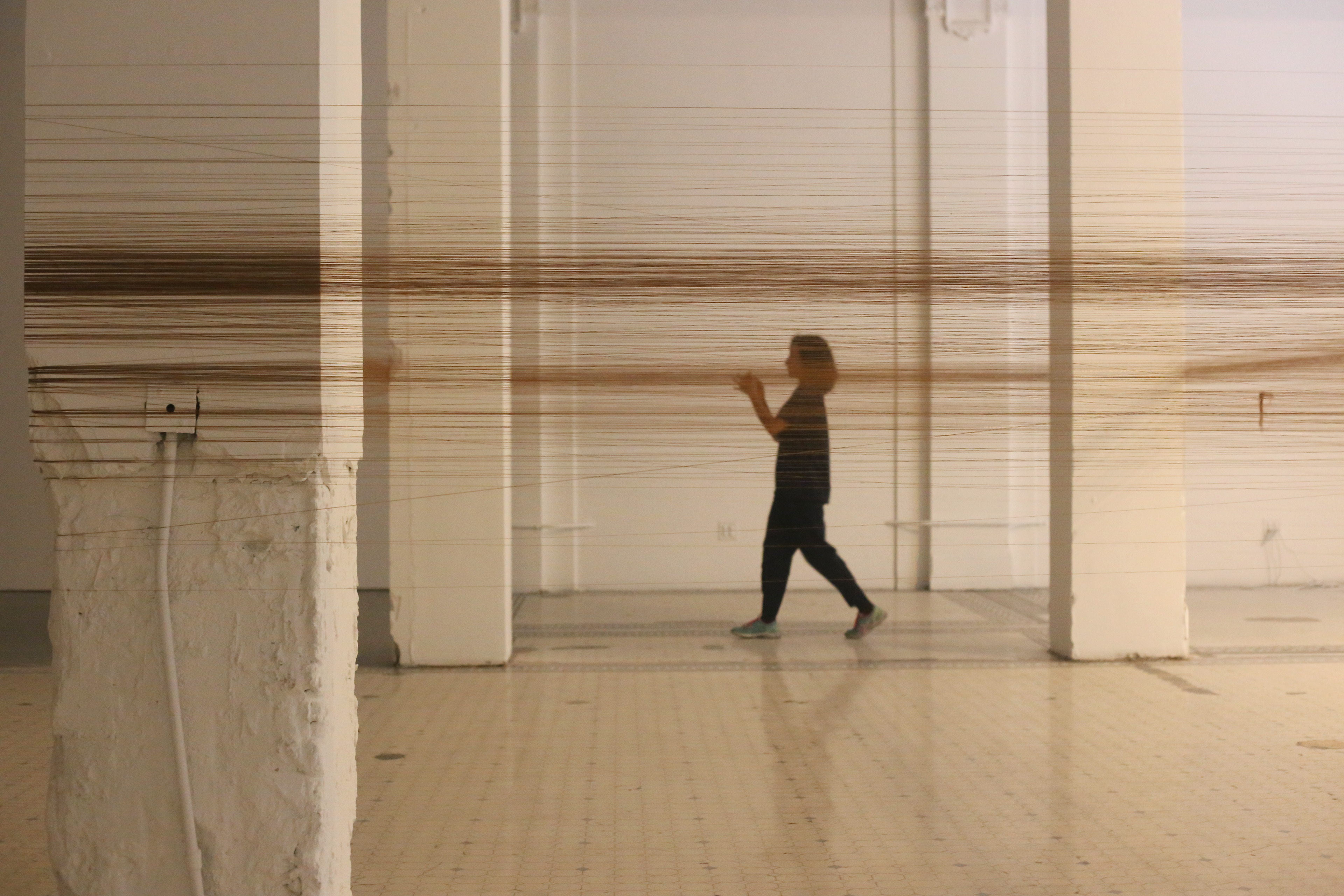 "The Thread" was a durational performance presented over three days during my artist residency with Love's Remedies at the Art Center DTLA in July 2020. Each day, for four hours, I walked in continuous circles around the building’s four central pillars, raveling and unraveling a spool of thread. Through this repetitive gesture, the thread slowly transformed—from spool to ball—subtly reshaping the space. The work responded to the stillness and confinement of pandemic interiors, while the city outside pulsed with protests and calls for social justice.
